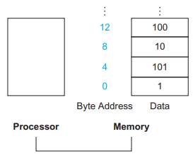 MIPS의 산술연산은 레지스터에서만 실행되므로 메모리와 레지스터 간에 데이터를 주고받는 명령어가 필요하다. 그런 명령어를 데이터 전송 명령어(data transfer instruction)이라고 한다. 메모리에 기억된 데이터 워드에 접근하려면 명령어가 메모리 주소를 지정해야 한다. 메모리는 주소가 인덱스 역할을 하는 큰 일차원 배열이다. 주소는 0부터 시작된다.