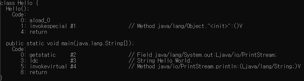 - .class 파일에 쓰여진 기계어들은 프로세서의 명령어가 아닌, jvm의 기계어인 바이트코드이다.