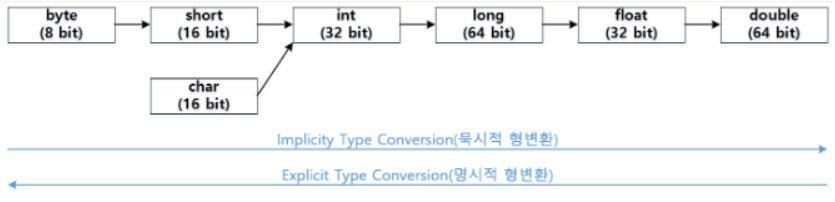 자동 타입 변환은 대입 연산이나 산술 연산에서 컴파일러가 자동으로 수행해주는 타입 변환을 말합니다. 자바는 데이터의 손실이 발생하지 않는다면 boolean 타입을 제외한 나머지 프리미티브 타입의 타입 변환을 자유롭게 수행할 수 있습니다.